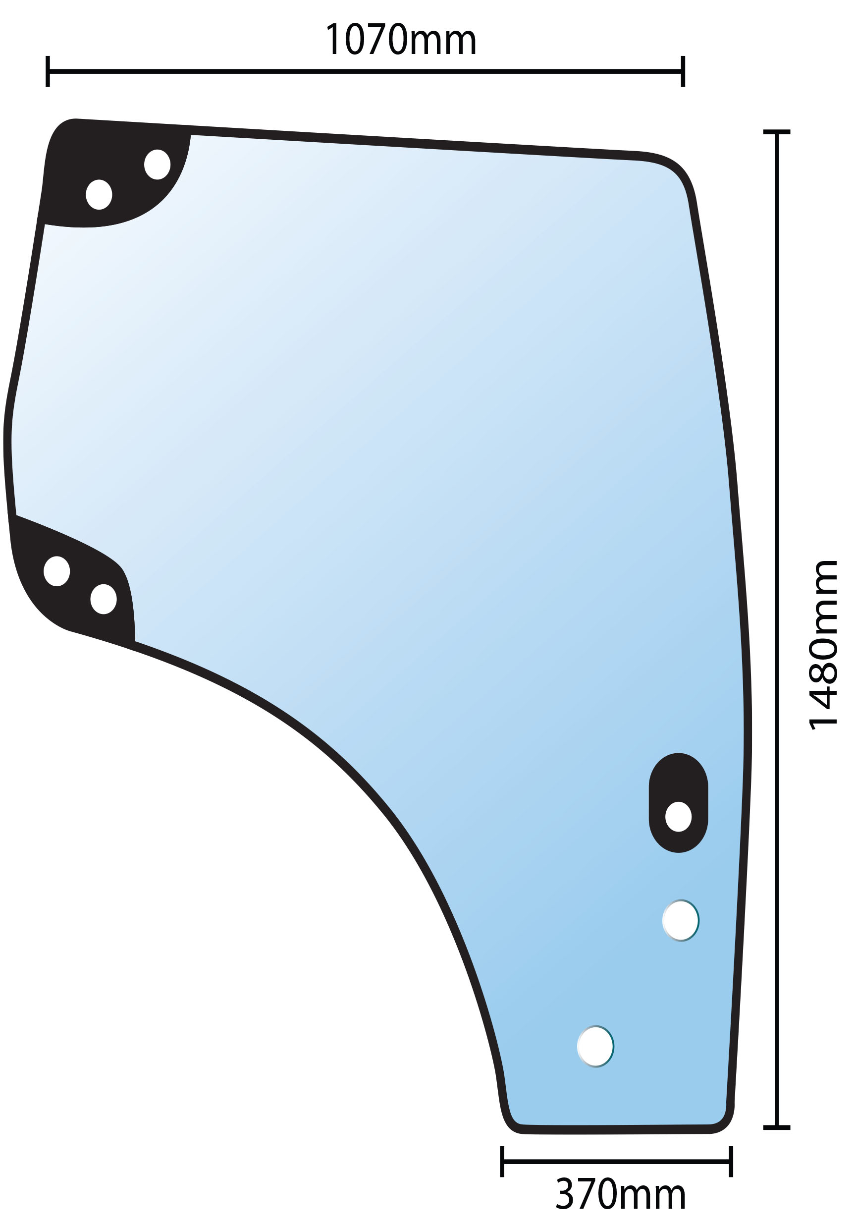 Glass Ford TSA & MXU RH Door T6030 T7030 - Series TSA Case MXU100 MXU110 MXU115 MX41