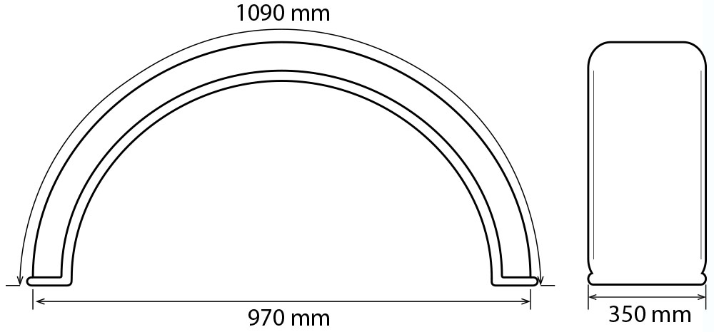 All Measurements Are +/- 15mm Due to the nature of manufacturing process Width: 350mm, Curve: 1090mm, Length: 970mm, Min Qty: 2.